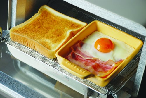 例えば卵とベーコンを入れたその器を、パンと一緒にオーブントースターに入れると